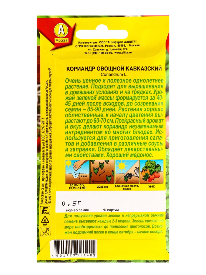 Семена Кориандр овощной Кавказский, Ц/П,0,5 г (комплект 2 шт)