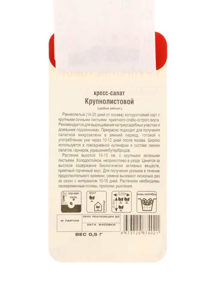 Семена Кресс-салат «Крупнолистовой», 0.5 г, «Сибирский сад» (комплект 3 шт)