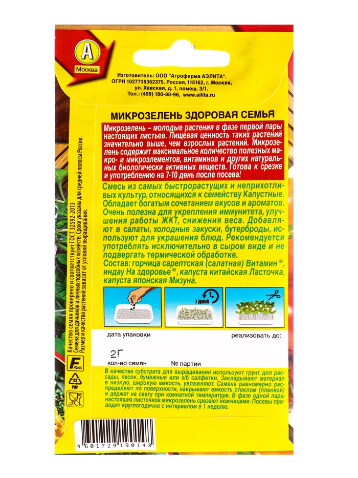 Семена Микрозелень Здоровая семья, Ц/П,2 г (комплект 2 шт)