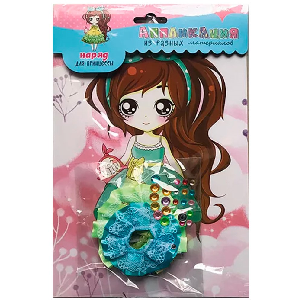 Комплектация: изображение принцессы, разноцветные элементы из тесьмы и вышивки, двусторонняя клейкая лента