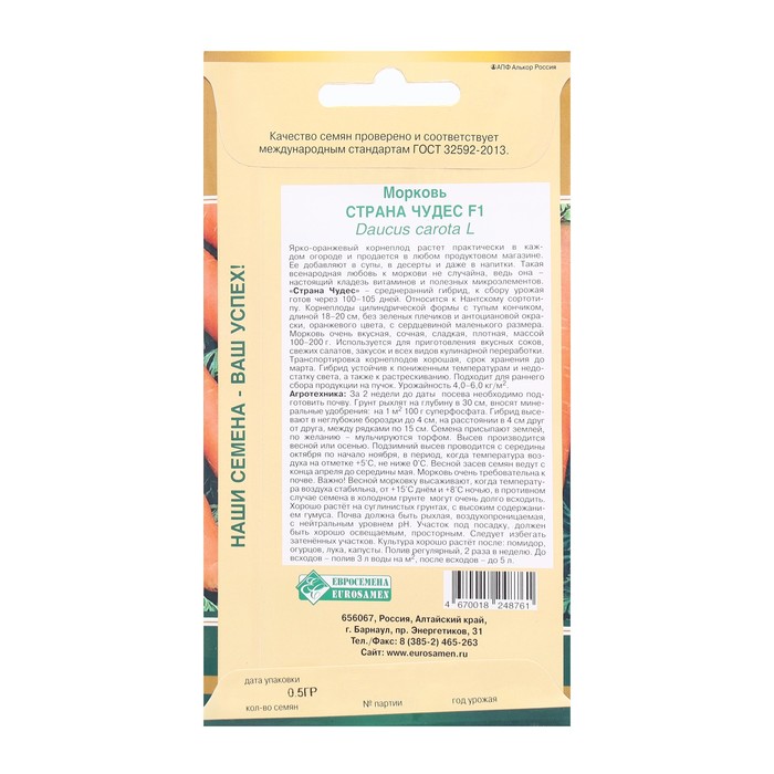 Семена Морковь Страна Чудес F1, 0,5 г