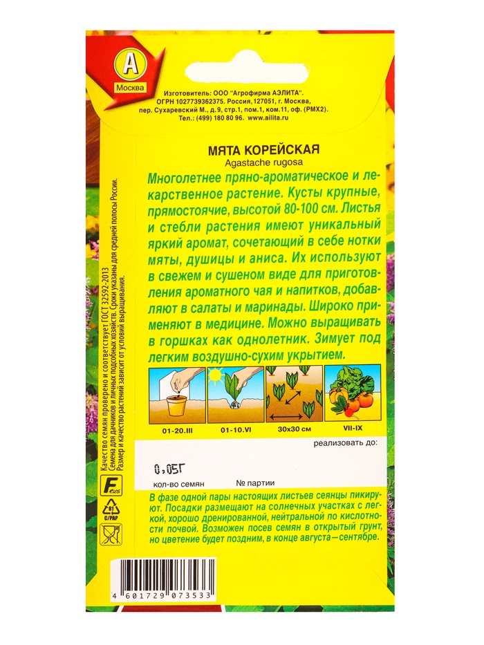 Семена Мята Корейская Лечебный огород, Ц/П,0,05 г (комплект 3 шт)