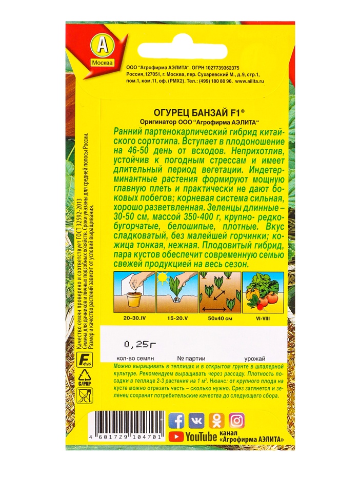 Семена Огурец Банзай F1 Парт, Ц/П,0,25 г