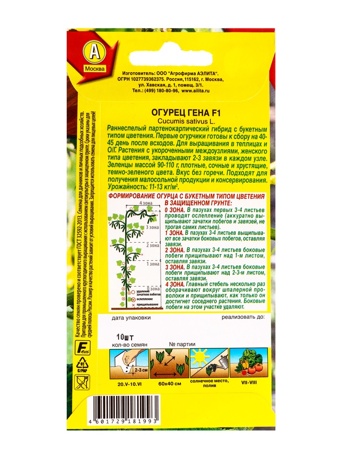 Семена Огурец Гена F1 Парт, Ц/П,10 шт. (комплект 2 шт)
