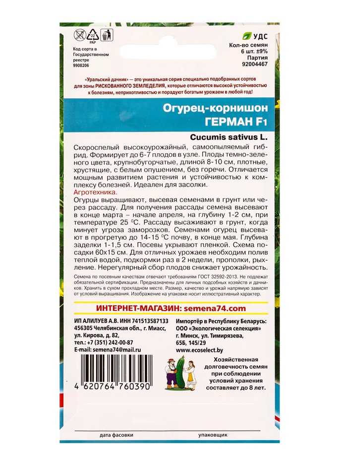 Семена Огурец Герман F1 - корнишон (УД) Е/П , Е/П, 6 шт.