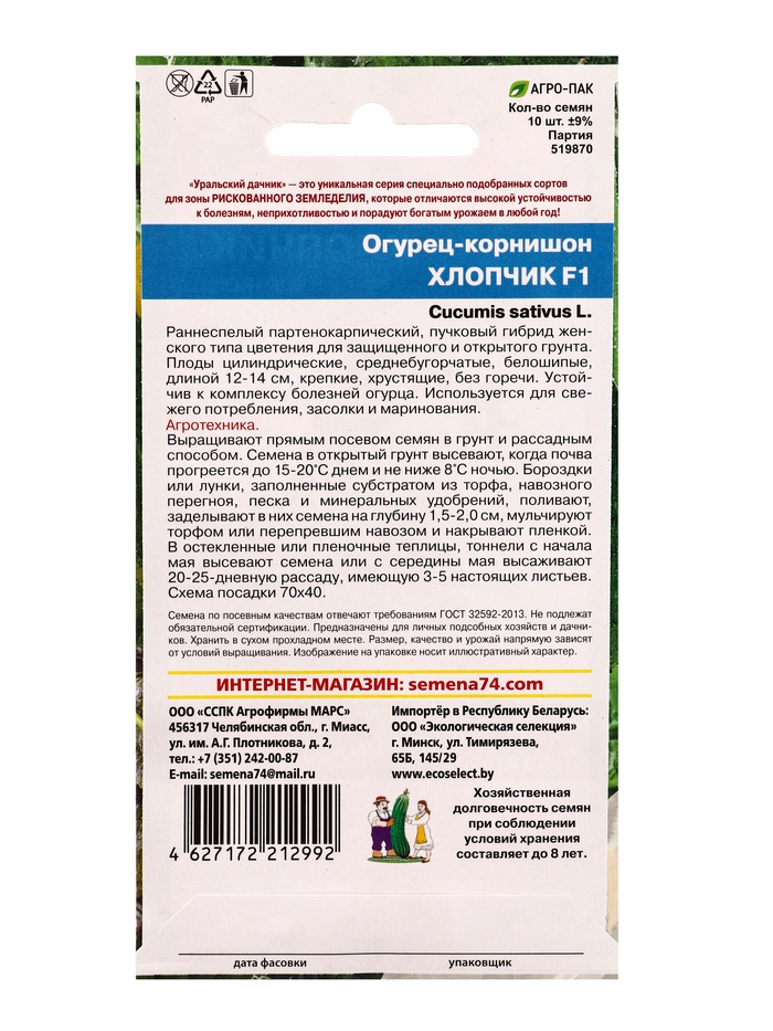 Семена Огурец Хлопчик - корнишон F1 (УД) Е/П , Е/П, 10 шт. (комплект 2 шт)