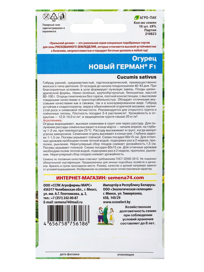 Семена Огурец Новый герман F1 (УД) Е/П , Е/П, 8 шт.