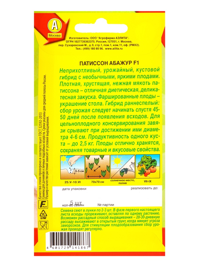 Семена Патиссон Абажур F1 Самое самое, Ц/П,5 шт.