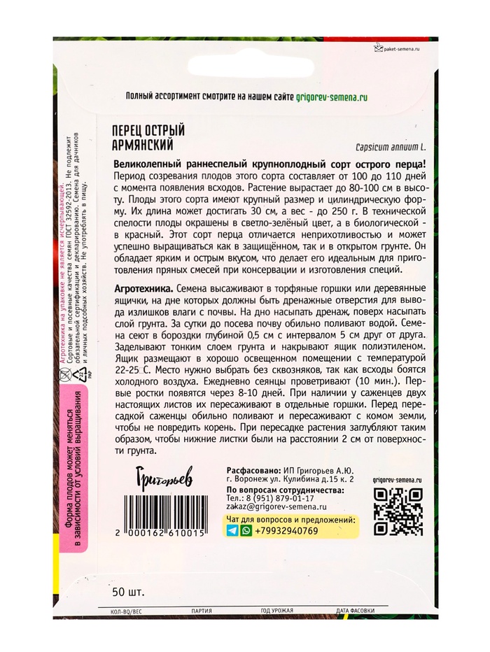 Семена Перец острый Армянский ВП 50 шт. (комплект 2 шт)