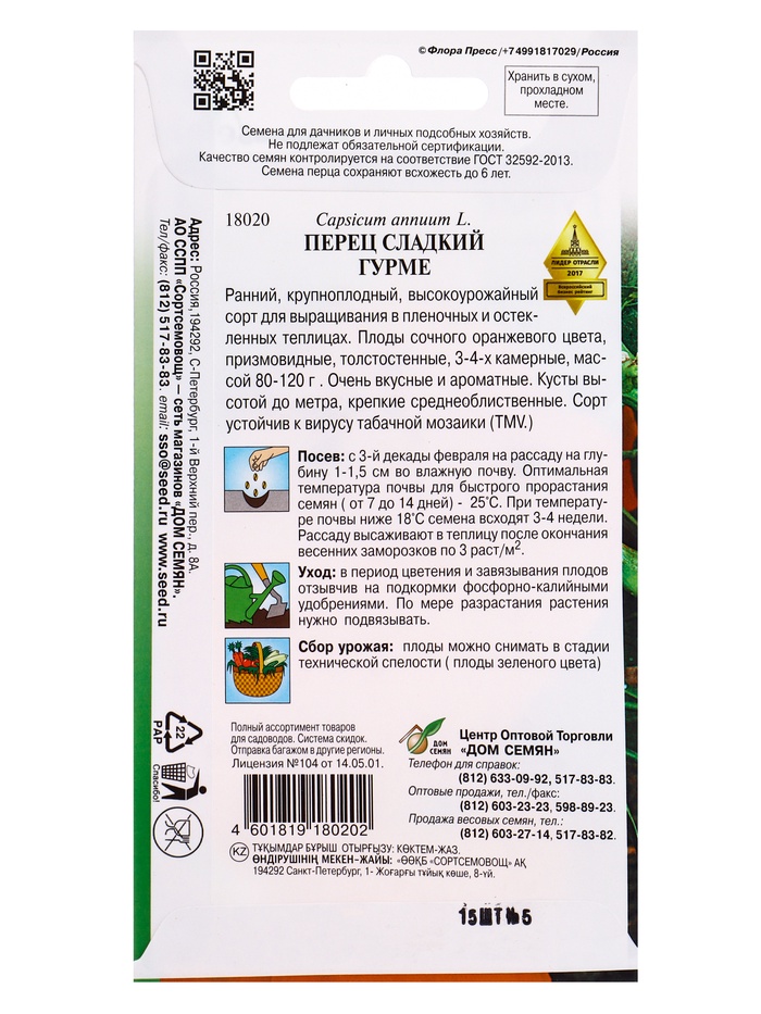 Семена Перец сладкий Гурме 15 шт (комплект 2 шт)