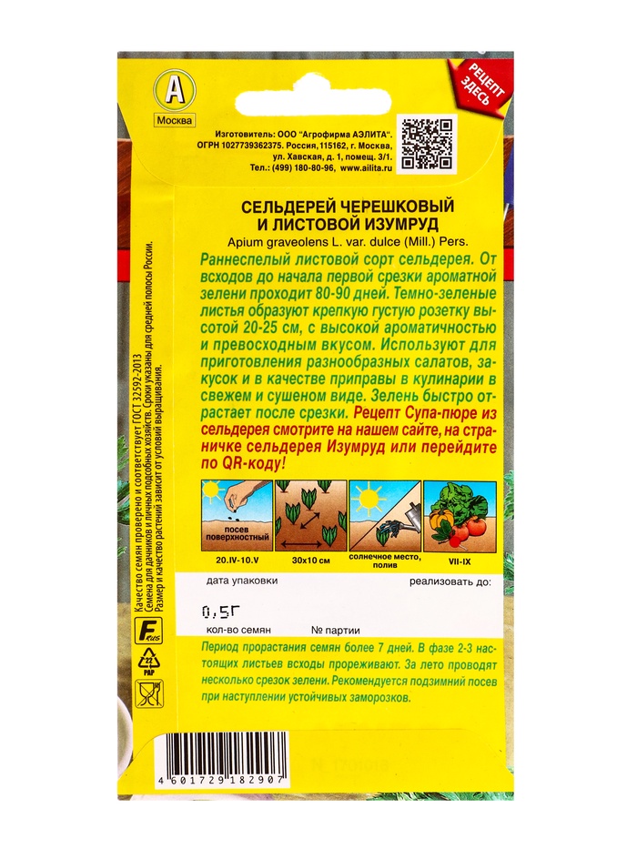 Семена С.ьдерей листовой Изумруд Блюда стран мира, Ц/П,0,5 г (комплект 3 шт)
