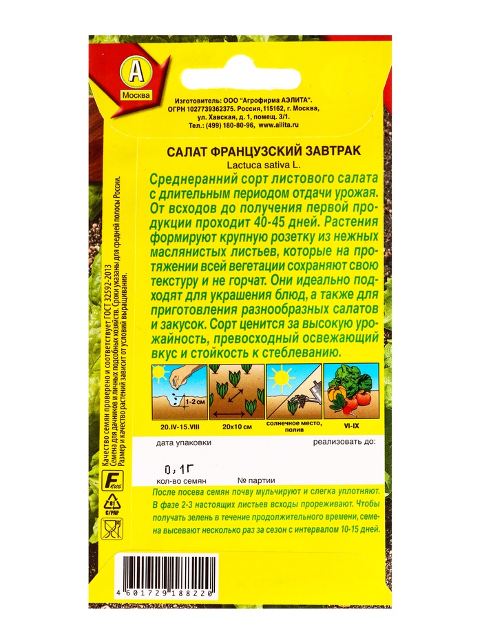 Семена Салат Французский завтрак, Ц/П,0,1 г (комплект 3 шт)