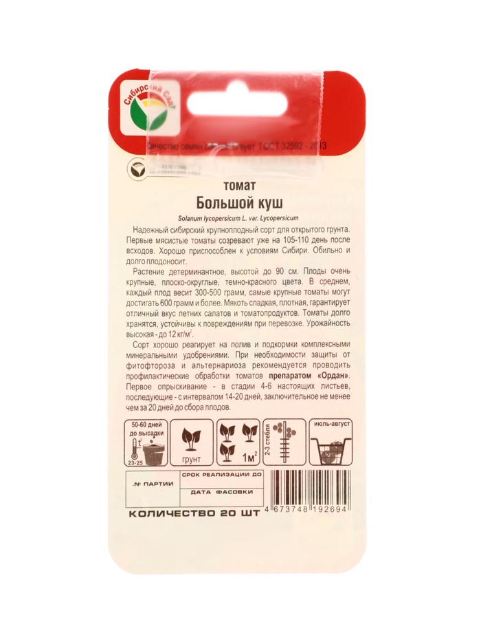 Семена Томат «Большой куш», 20 шт., «Сибирский сад» (комплект 2 шт)