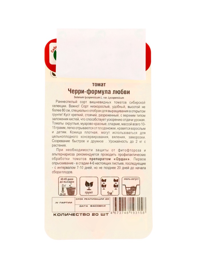 Семена Томат Черри «Формула любви», 20 шт., «Сибирский сад» (комплект 2 шт)