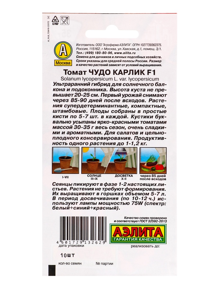 Семена Томат «Чудо карлик», F1, «Урожай дома - Агрофирма АЭЛИТА», 10 шт.