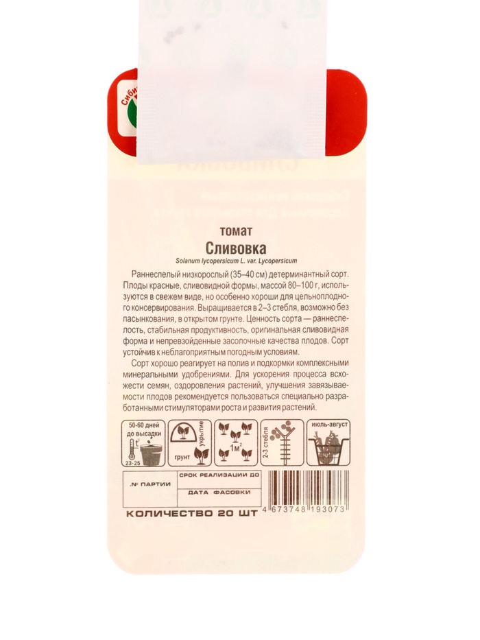 Семена Томат «Сливовка», 20 шт., «Сибирский сад» (комплект 2 шт)