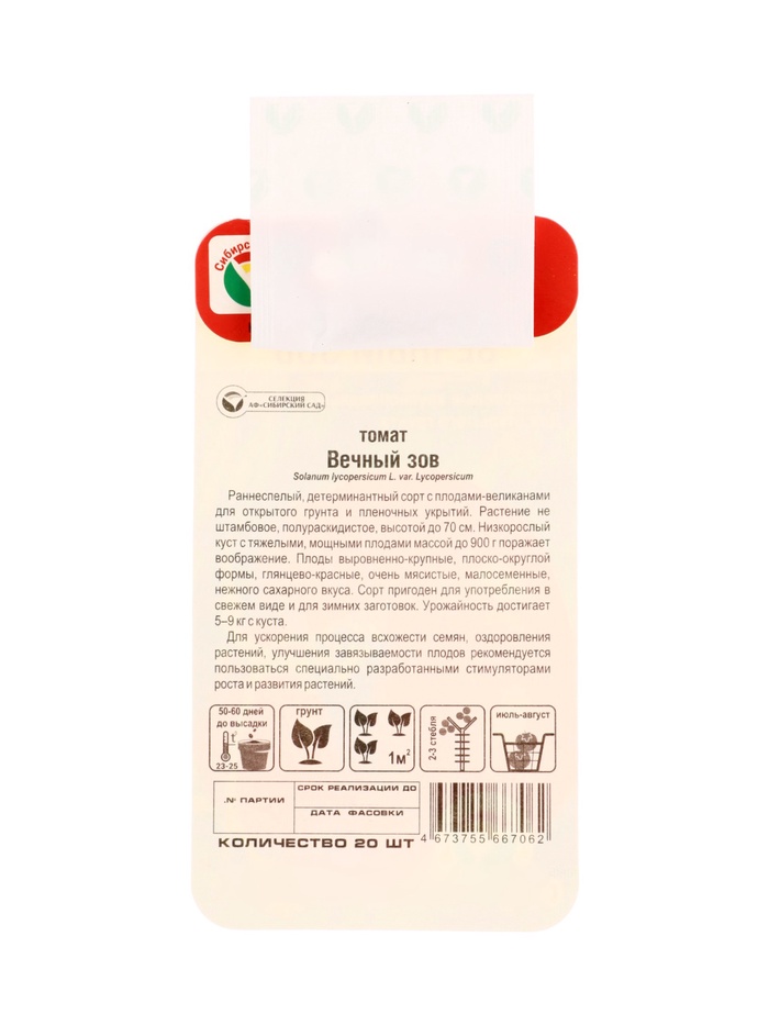 Семена Томат «Вечный зов», 20 шт., «Сибирский сад» (комплект 2 шт)
