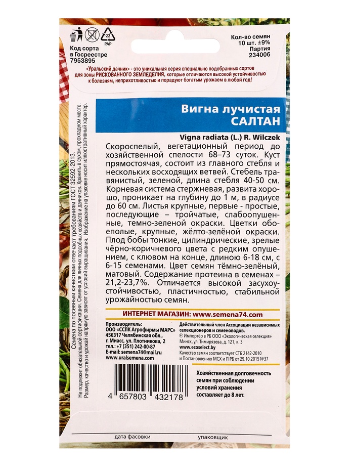 Семена Вигна лучистая Салтан (УД) Е/П , Е/П, 10 шт. (комплект 3 шт)