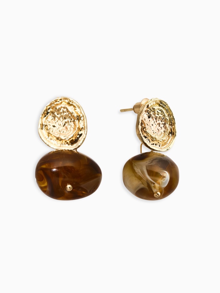 Представляем элегантные серьги-тренд, созданные из натуральных материалов и отличающиеся особой утончённостью и изысканным внешним видом. Глубокий коричневый цвет пластичного акрила и блистающее золото составляют идеальную пару, формирующую классический и в то же время ультрасовременный комплект, подходящий как для деловых встреч, так и для праздничных мероприятий.