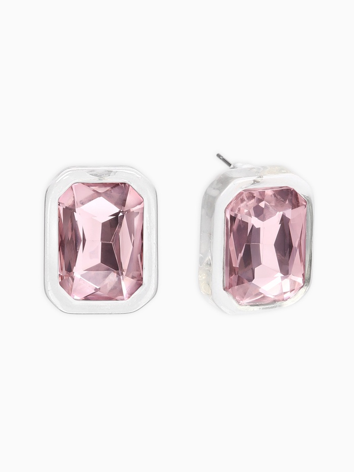 Серьги гвоздики «Кристалл. Прямоугольник», розовые