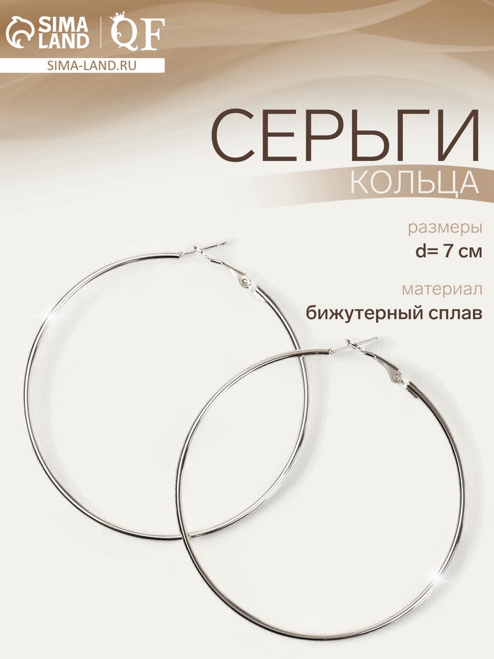 Серьги кольца QF «Классика», d=7 см, цвет серебро