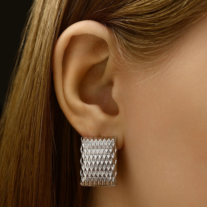 Серьги металл «Аккорд» орнамент, прямоугольник, цвет серебро
