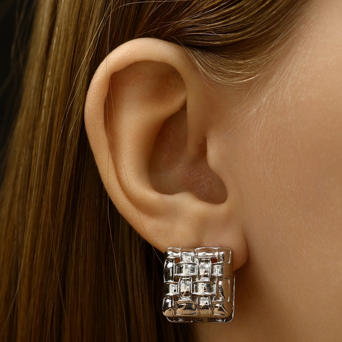 Серьги металл «Аккорд» плетение, квадрат, цвет серебро