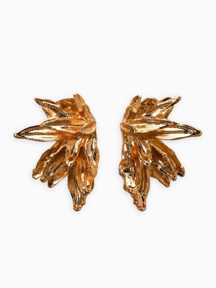 Золотистые лепестки цветов, нежно обвивающие ухо, наполнены жизнью и светом, символизируя расцвет женской энергии и внутреннего счастья. Незамысловатый и в то же время элегантный дизайн символизирует природу и вечную женскую прелесть, которую нельзя оставить незамеченной.