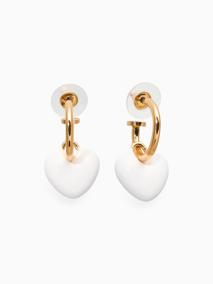 Серьги со съмными элементами "Сердца" пухлые, цвет белый в золоте