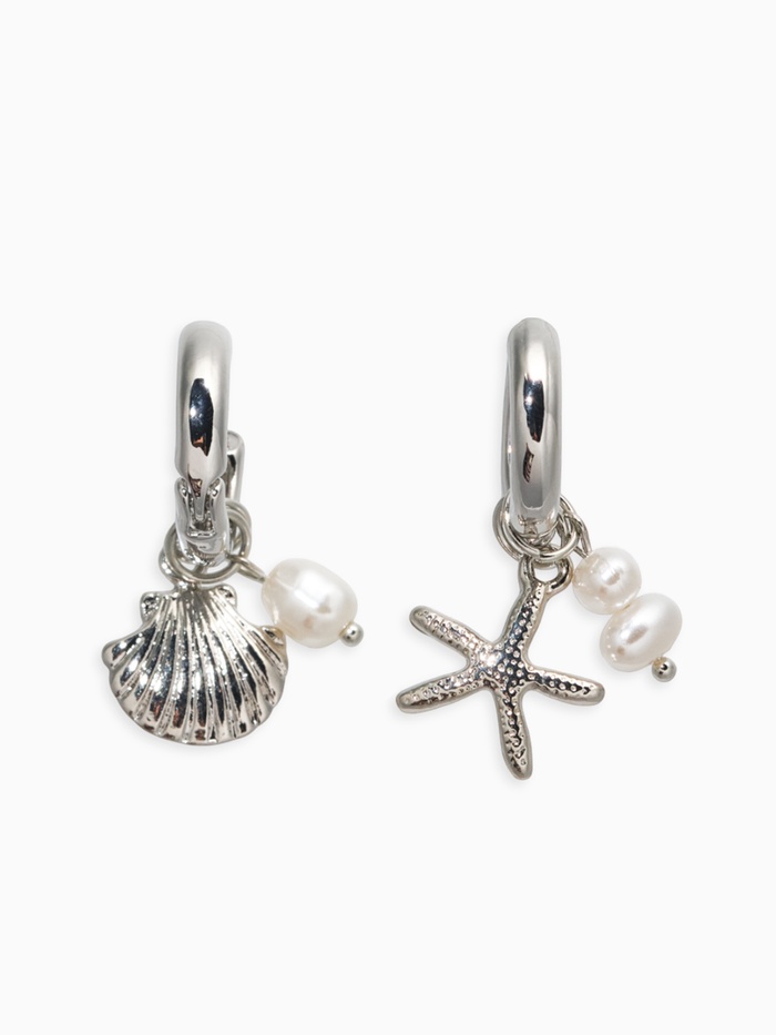 Присоединитесь к морским приключениям с очаровательными серьгами, украшенными съемными подвесками в виде раковины, звезды и жемчужины. В белых тонах и сиянии серебра эти серьги наполняют образ легкой свежестью и очаровательным шармом, становясь идеальным выбором для романтичных натур.