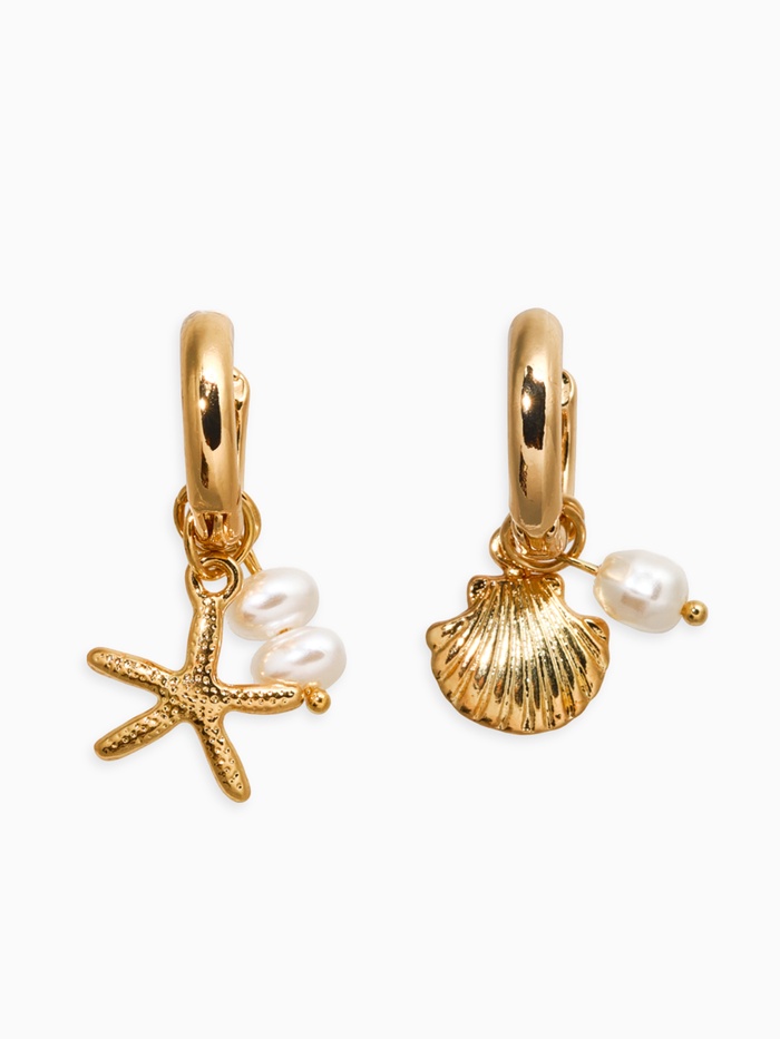 Вдохновитесь морской темой и окунитесь в мир элегантности с красивыми серьгами, украшенными съемными подвесками в виде ракушки, звезды и жемчужины. Эти украшения создадут на вашем лице удивительное свечение, превратив обычный образ в сказочно-изысканный.