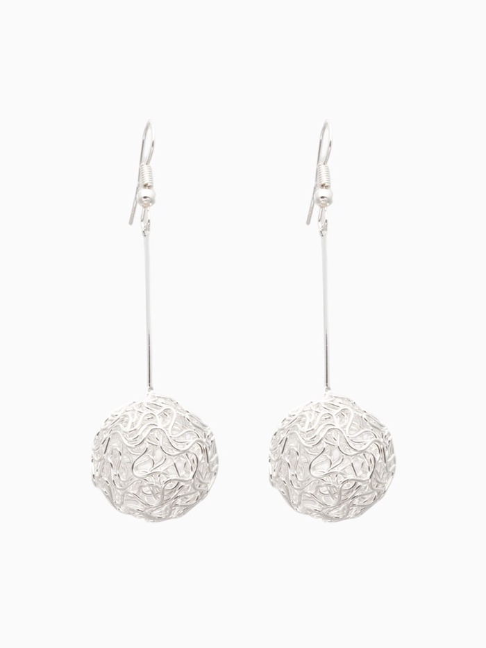 Серьги висячие «Шарик» переплетение, цвет светлое серебро, 6.5 см