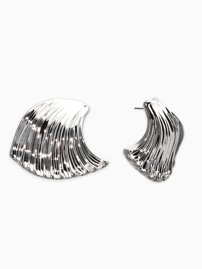 Морская прохлада в минималистичном дизайне Женские сережки в виде серебряных волн – лаконичный аксессуар, который придаст свежесть и элегантность вашему образу. Нежные волны, выгравированные на белом металле, создают ощущение морской глади, успокаивающей и красивой.