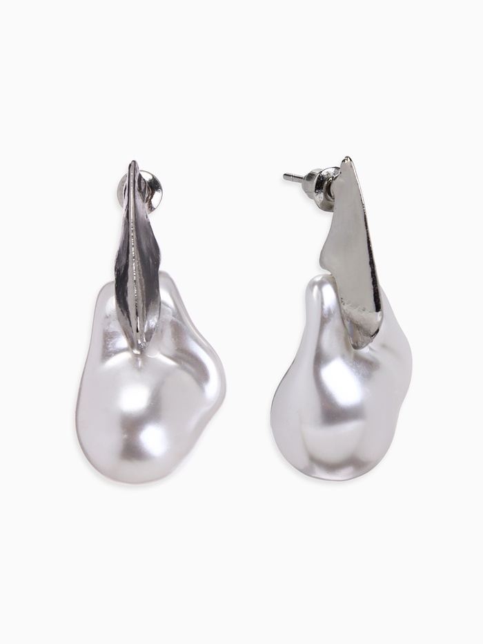 Белоснежные жемчужины, слегка затуманенные теплым свечением серебра, соблазняют плавными линиями, создавая картину идеальной симметрии и легкости. Размер капелек идеально подобран, подчеркивая естественную красоту и не перегружая образ лишними деталями.
