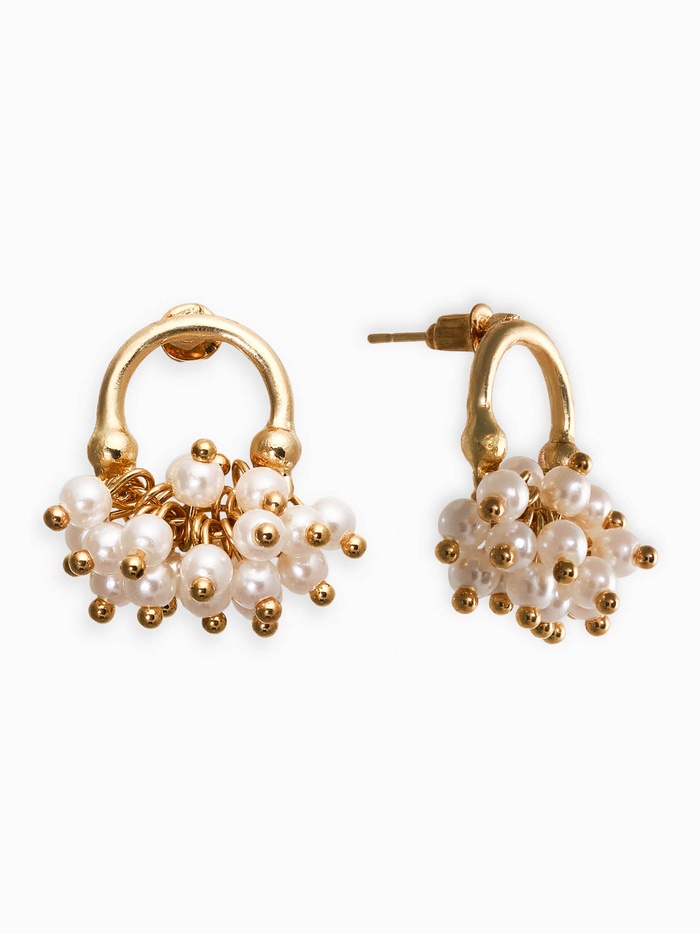 Основной акцент сделан на больших, чистых жемчужинах идеальной формы, расположенных в россыпях, напоминающих ветви виноградной лозы. Такое оформление выглядит воздушно и одновременно шикарно, идеально подчеркивая женские достоинства и поднимая настроение окружающим.