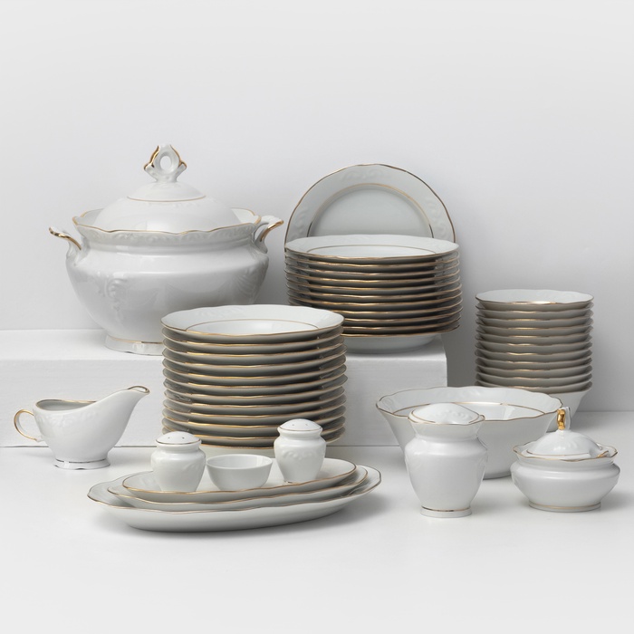 Сервиз столовый Добрушский завод «Бельё», 48 предметов, фарфор, белый