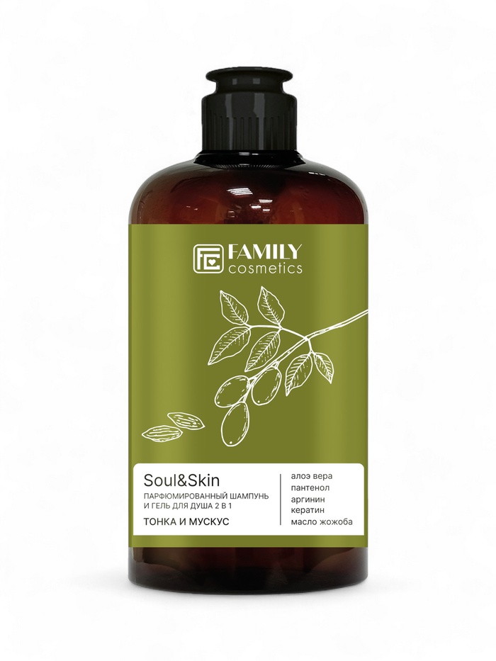 Шампунь и гель для душа парфюмированный Soul&Skin тонка и мускус, 470 мл