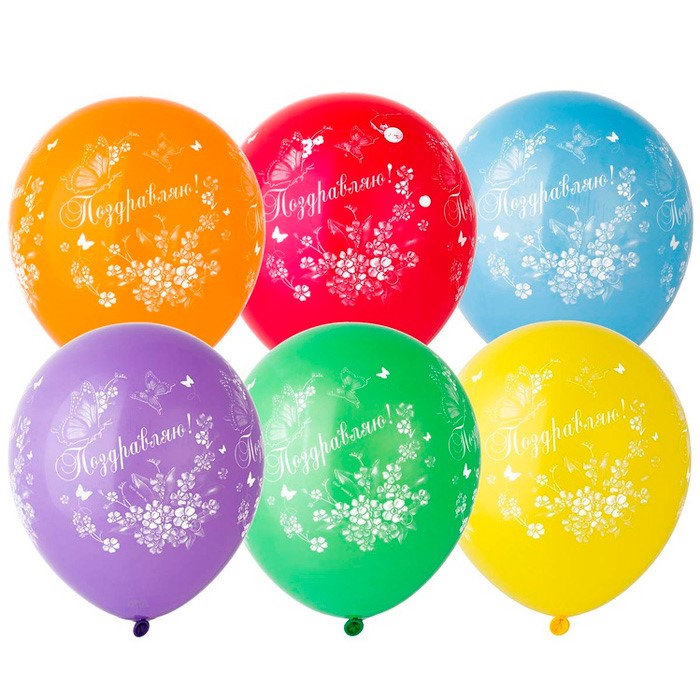 Шар 12" шелкография Поздравляю Бабочки/Е 25 шт 1103-1750 /цена за упак/