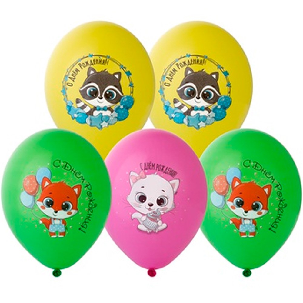 Шар 14" с рис. С ДР Зверюшки 4цв 25 шт 1103-2436 /цена за упак/