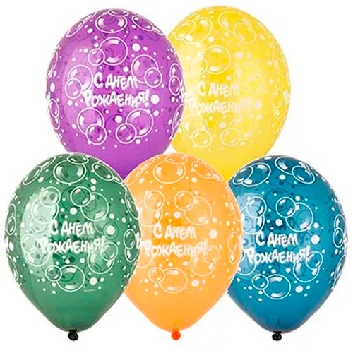 Шар 14" Шелкография кристалл С ДР Пузыри 25 шт 1103-2221 /цена за упак/