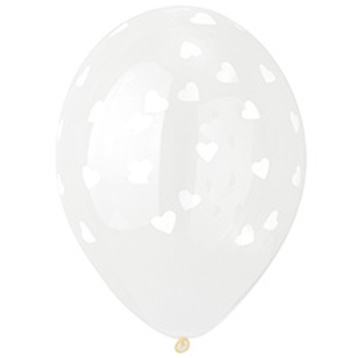 Шар 14" шелкография кристалл Сердца белые 1103-2298