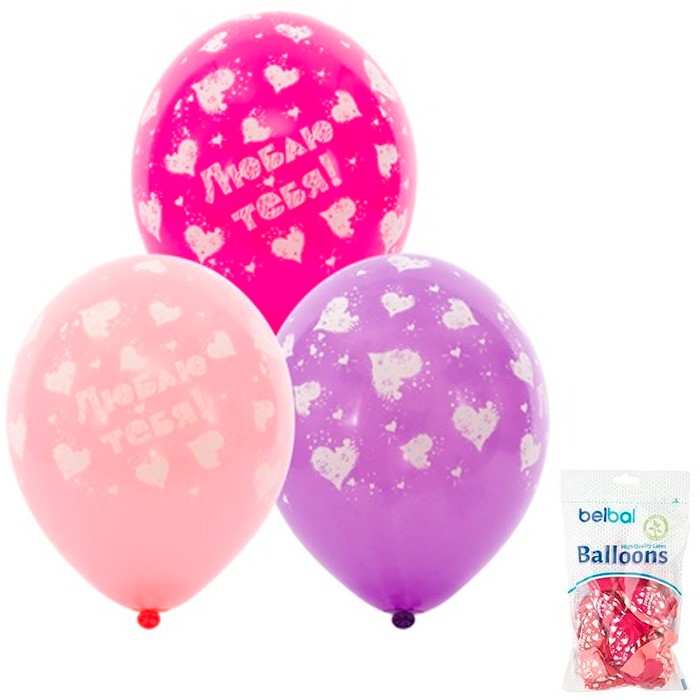 Шар 14" шелкография пастель Люблю Тебя сердц 1103-1780
