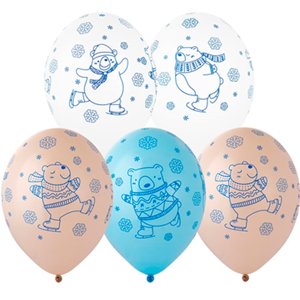 Шар 14" шелкография пастель Мишки на коньках 25шт 1103-3112 /цена за упак/