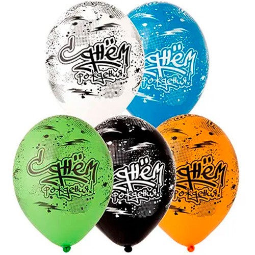 Шар 14" Шелкография пастель С ДР Граффити 25 шт 1103-2122 /цена за упак/