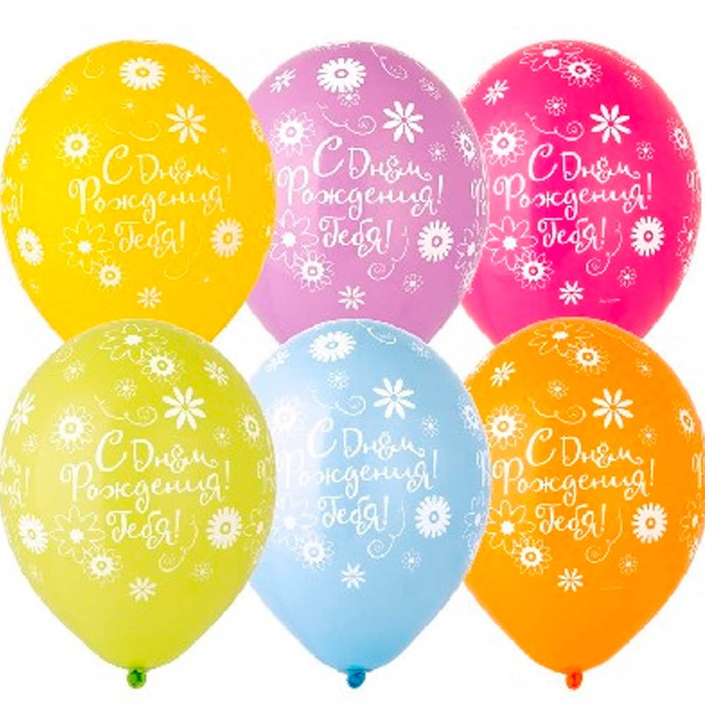 Шар 14" шелкография пастель С ДР Тебя Цветы 25шт 1103-2220 /цена за упак/