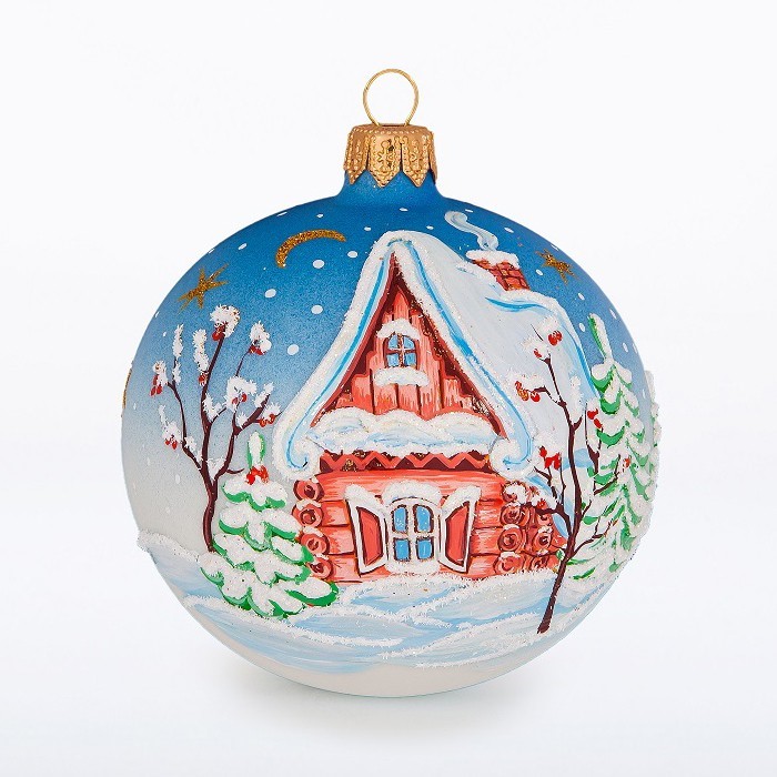 Изящный елочный шар «Снежный дом» с симпатичным изображением уютного домика подарком как взрослому, так и ребенку. Данная игрушка дополнит и украсить новогоднюю елочку, а также интерьер комнаты. Нарядная елочка подарят каждому члену семьи праздничное и, как в детстве, волшебное настроение.