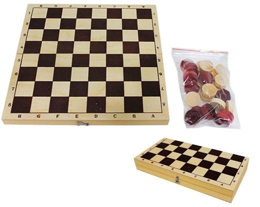 Комплектация: 24 шашки (12 черных и 12 белых), игровое поле - 1 шт.