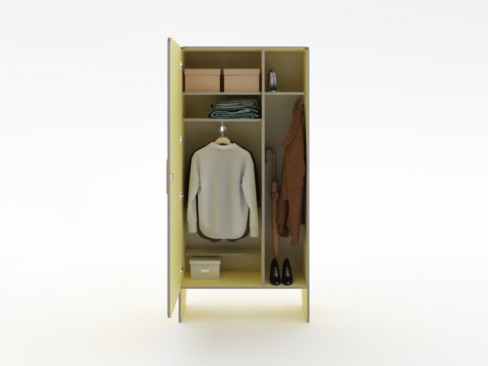 Шкаф для хранения личных вещей персонала предназначен для оснащения входной группы. Конструкция разделена на две функциональные зоны: закрытую, оснащенную замком для верхней одежды, и открытую — для сменных вещей. В нижней части предусмотрено место для установки скамейки, что делает использование шкафа еще удобнее. Внутри расположены надежные крючки и полки для одежды.