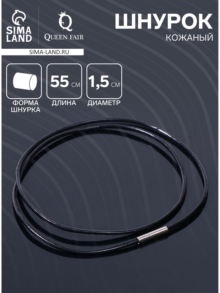 Шнурок кожаный d=1.5 мм, 55 см, чёрный (комплект 10 шт)