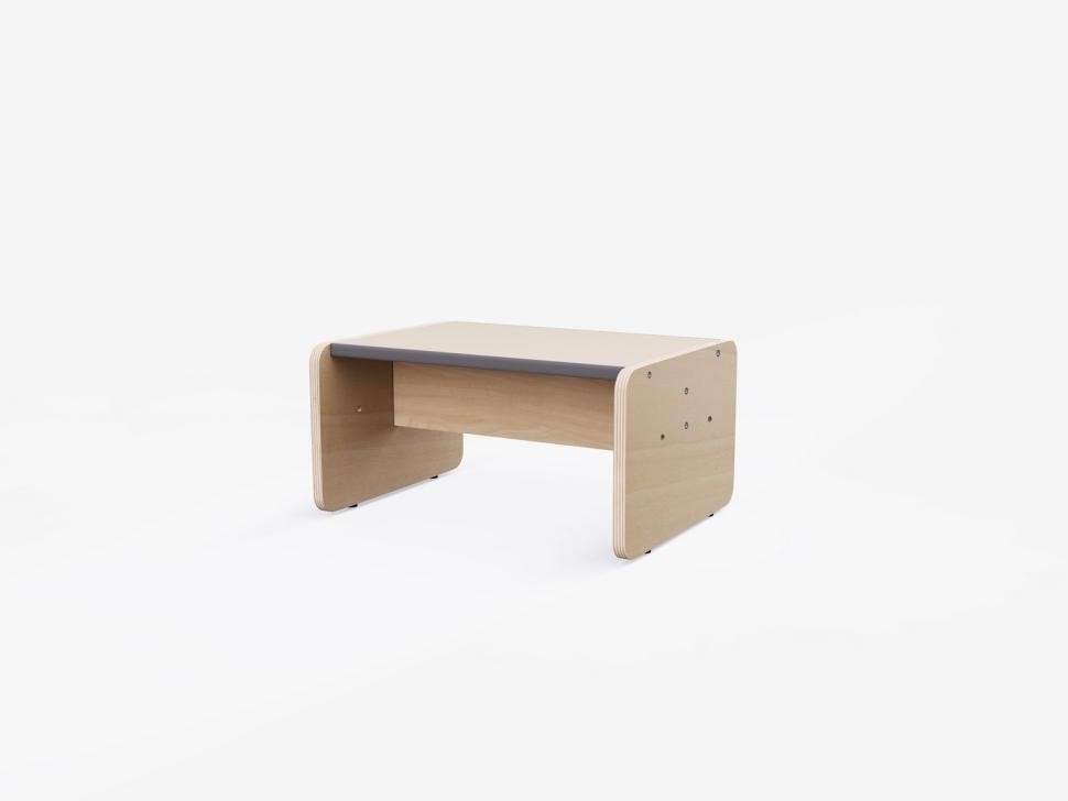 Скамейка изготовлена из натуральной березовой фанеры и ламинированной плиты, ей поверхность устойчива к влажной уборке и моющим средствам, что гарантирует лёгкий уход и поддержание гигиены в детском саду.